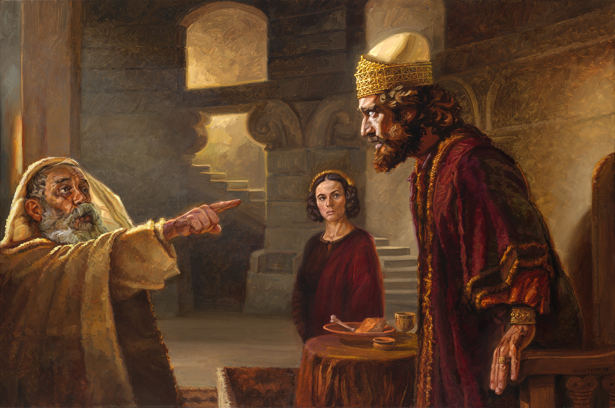 Пророк Нафан приходит во дворец Давида и представляет ему дело. Царь иногда выступает в роли судьи.