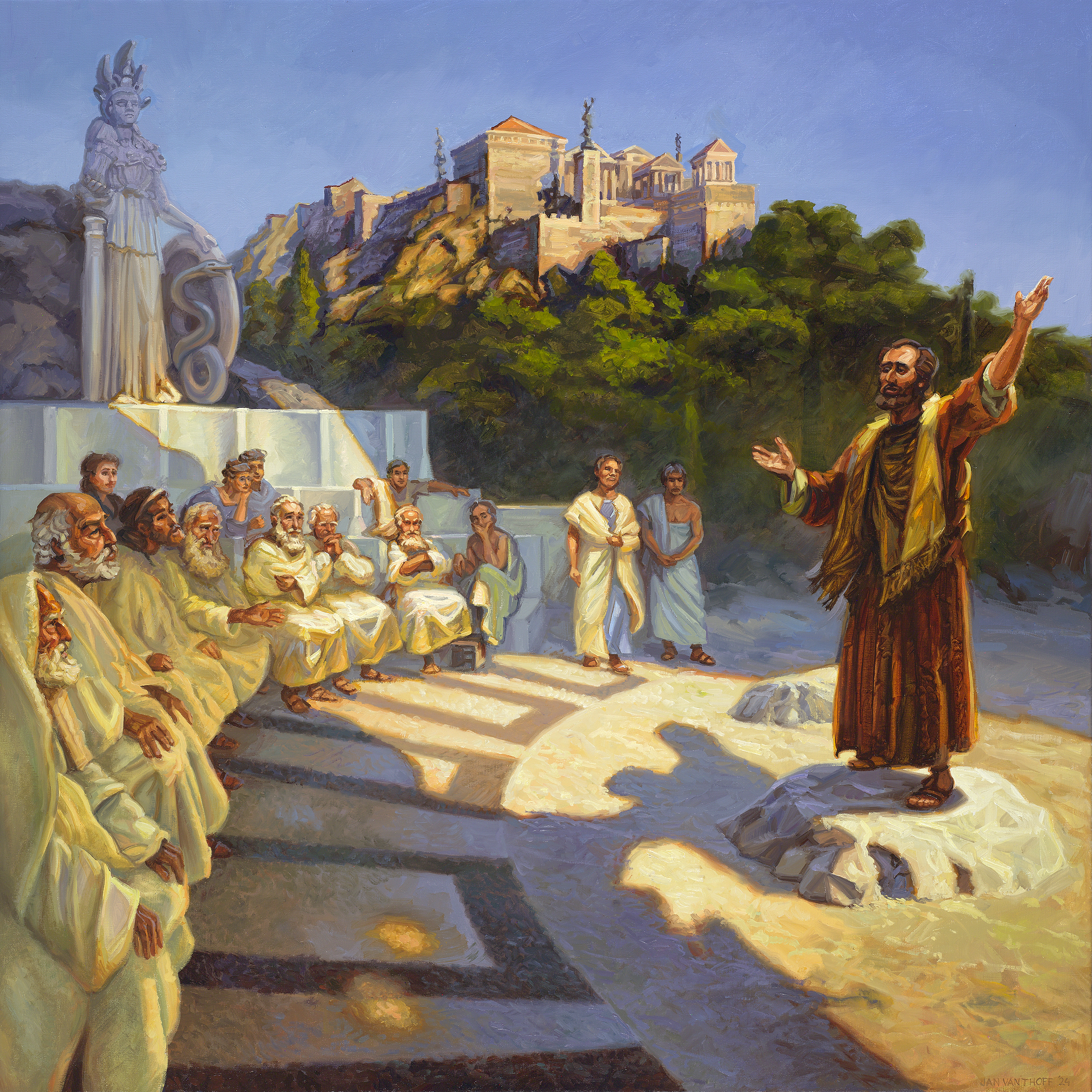 В Деяниях 17 главе говорится о встрече Павла с некоторыми греческими философами в Афинах. Гуляя по Афинам, он заметил множество идолов, которыми был наполнен город.